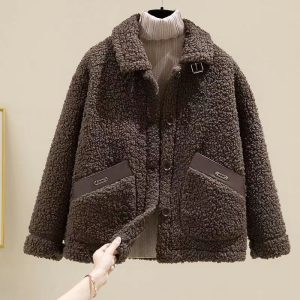 Fleece-lined Thickened Fashionable Lapel Workwear Lambswool Men’s Coat