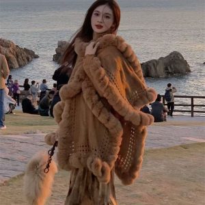Shawl Outer Match Cloak Fleece-lined Thickened Imitation Fur Collar Cape And Shawl Coat