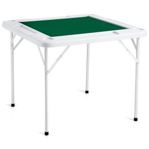 Mahjong Table, 4 Player Folding Domino Table With Wear-Resistant Green Tabletop, Portable Square Card Table With 4 Cup Holders & 4 Chip Trays For Mahjong Poker Puzzles, 35.4 X 35.4-inch