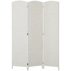 Room Divider, 3 Panel Folding Privacy Screen, Tall Portable Weave Partition Wall Divider For Bedroom, White