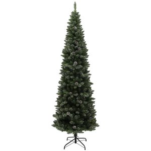 7ft Artificial Pencil Christmas Tree With 980 Branches, Pinecones, Metal Stand, Realistic Xmas Tree For Home