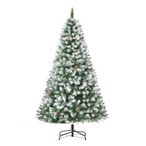 6ft Snow Flocked Artificial Christmas Tree, Unlit Full Fir Tree With Automatic Open, 800 Realistic Branches And 61 Pine Cones