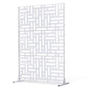 Metal Privacy Screen, 47″ W X 76″ H Outdoor Privacy Screens 3-Panel, Freestanding Outdoor Divider With Stand, Decorative Garden Steel Privacy Fence For Balcony Patio Indoor Room Hot Tub White