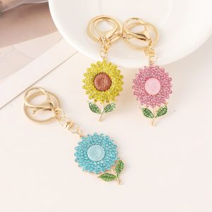 Handmade Dripping Oil Cute Little Bee Flower Keychain