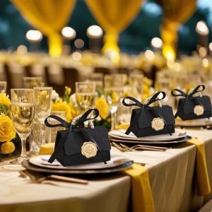 10 Pcs Black Gift Boxes With 10 Pcs Golden Seal Label Stickers