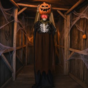 5.6ft Halloween Decorations Outdoor Life Size Animatronics Ghost With Pumpkin Head, Sound-Actived Party Decor With Creepy Sound , Scary Haunted House Props For Garden Yard Lawn