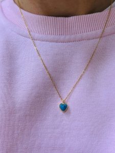 Stainless Steel Minimal Blue Stone Heart Necklace
