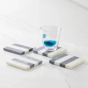 Striped White Marble Coasters Set Of 4