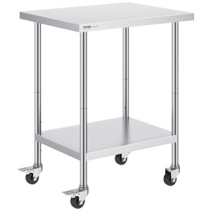 Stainless Steel Work Table 24 X 30 X 38 Inch, With 4 Wheels, 3 Adjustable Height Levels, Heavy Duty Food Prep Worktable For Commercial Kitchen Restaurant, Silver