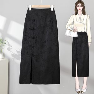 New Chinese-style Traditional Frog-button Retro Jacquard High-waisted Slimming Skirt