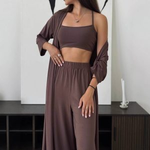 Women’s Simple Korean Velvet Casual Pants High-Waisted Slim Fit Elastic Waist Wide-Leg Trousers For AutumnWinter