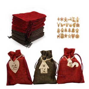 24 Pieces Christmas Advent Calendar Bags With Clips And String -Festive DIY Countdown Gift Bags For Candies, Toys And Holiday Decorations, Numbered From 1 To 24, Featuring Santa, Snowmen And Gingerbr