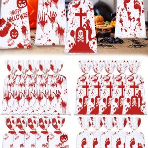 50-Pack Halloween Cellophane Candy Bags 10.5 X 4.9 Inch Halloween-Themed Gift Bags, Includes 50 Gold Twist Ties, Halloween Party Supplies Trick-or-Treat Party Favor Bags