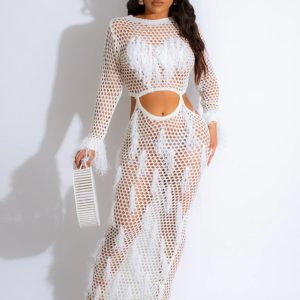 European And American Women’s Clothing Knitted Hollow Tassel Midriff Outfit Beach Dress