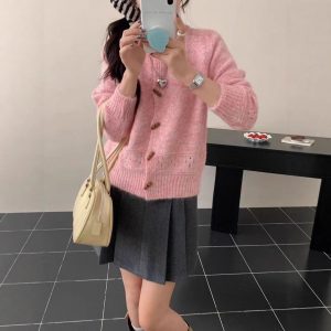 Atmosphere Horn Button Solid Color Soft Glutinous Knitted Cardigan