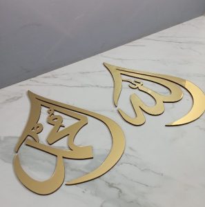 Golden Acrylic Allah Muhammad Islamic Wall Art