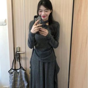 Knitting Suit Women’s Round Neck Sweater Skirt Versatile Casual