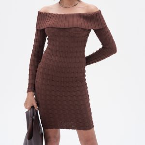 European And American-style Cold-shoulder Bodycon Knitted Dress With High Sense
