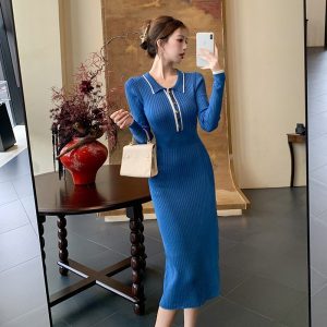 Slimming And Figure-flattering Contrast Color Knitted Bodycon Dress