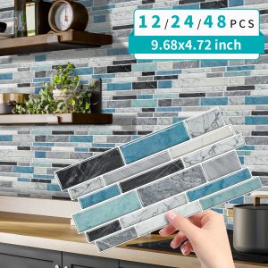 Imitation Tile Marble Effect Waterproof And Oil-Resistant Peel-Off Tile Stickers Blue Green Kitchen Bathroom Laundry Room Wall Decor