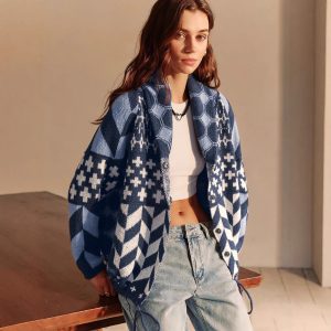 Khaki Floral Waffle Knit Patchwork Chest Pockets Buttoned Jacket