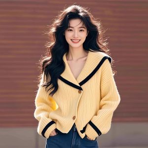 Women’s V-neck Outerwear All-match Knitted Cardigan