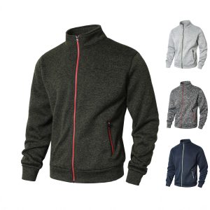 Men’s Stand Collar Jacket Cardigan Cationic Fleece Padded Coat