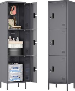 Metal Locker With Hooks And Ventilation Holes,Metal Storage Locker With Keys And Business Card Slof For Home,Gym,Garage,School,Office, D,Assembly Required,Dark Grey