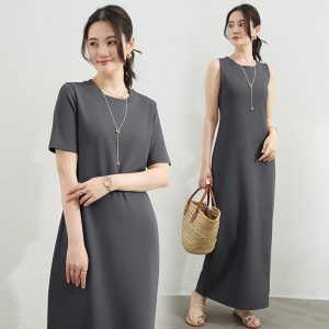 Women’s Short-sleeve Knitted Long Dress With Straps