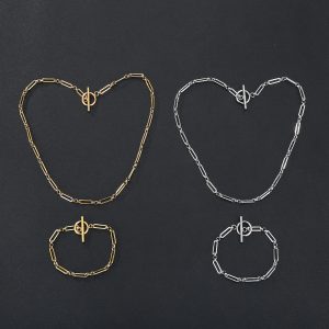 Wear-resistant Non-fading Metal Stainless Steel Necklace, Bracelet Set