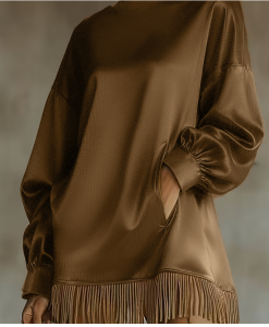 Loose Pocket Tassel Long-Sleeve Suede Dress