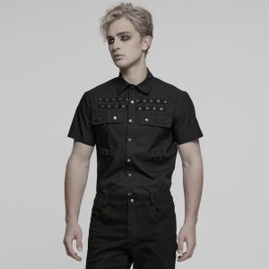 Men’s Short-sleeved Loose Versatile Casual Lapel Stripe Top
