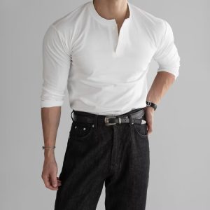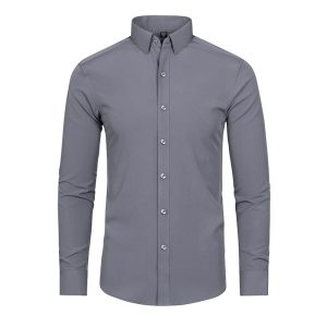 Men’s Solid Color Long Sleeve Casual Slim Fit Business Stand Collar Robe
