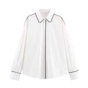 Simple Contrast Color Trim Poplin Shirt