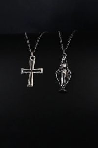 2 Piece Cross And Virgin Mary Necklace Set Men Religious Style Jewelry