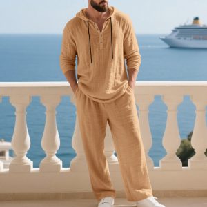Men’s Casual Home Wear Set Long Sleeve Pants With Hood