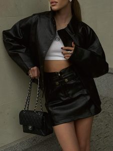 Women’s 2 Piece Outfits Tie Knot Front Long Sleeve Crop Top And Mini Skirt Set