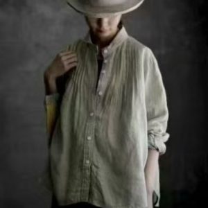 Women’s Lapel Japanese Long Linen Sleeves Shirt