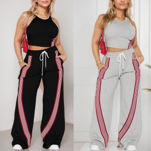 Front Short And Back Long Splicing Design With Pockets Top And Pants Set