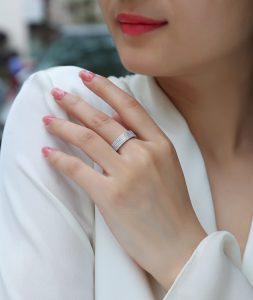 A Luxurious And Fashionable Light Luxury Jewelry Silver Ring Set With Top-quality Moissanite, S925 Silver Plated With Platinum