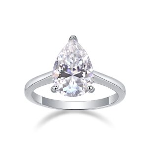 Love Ring – Set With Top-quality Pear-shaped Moissanite S925, Silver And Platinum-plated Diamond Wedding Ring. The Ring Can Be Inspected With A Diamond Pen