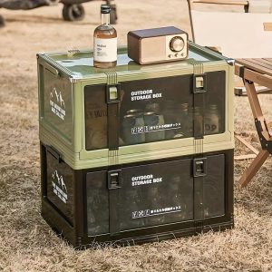 Folding Camping Storage Box Multi-layer Thickened Cover Durable Plastic Portable Outdoor Picnic Car-mounted Solid Structure Automatic Camping Accessories Outdoor Storage Cabinet Rack
