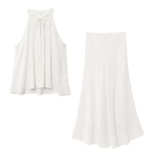 Linen Casual Suit Hanging Neck Casual Top Half Skirt