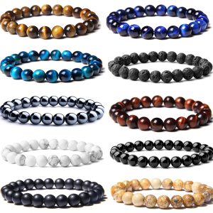 8mm Natural Gemstone Bracelet Tiger Eye Stone White Turquoise