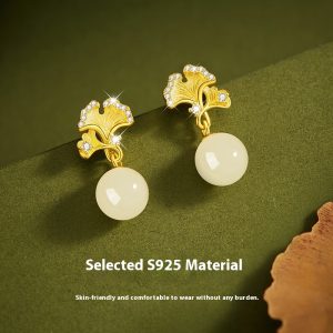 Ancient Chinese Style Temperament Natural Hetian Jade Ear Studs
