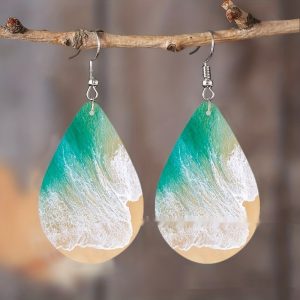 Pattern Small Water Drop Cross Mirror Popular Wooden Earrings