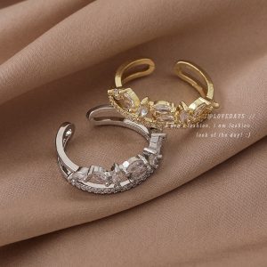 Micro Inlaid Zircon Willow Leaf Double-layer Ring Mori Sweet