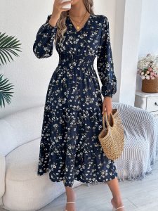 V-neck Long-sleeve Suit Dress For Women