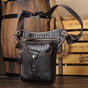 Men’s Denim Leather Leg Bag Outdoor Sports