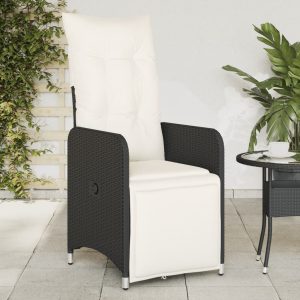Garden Chairs with Cushions 2 pcs Adjustable Black Poly Rattan